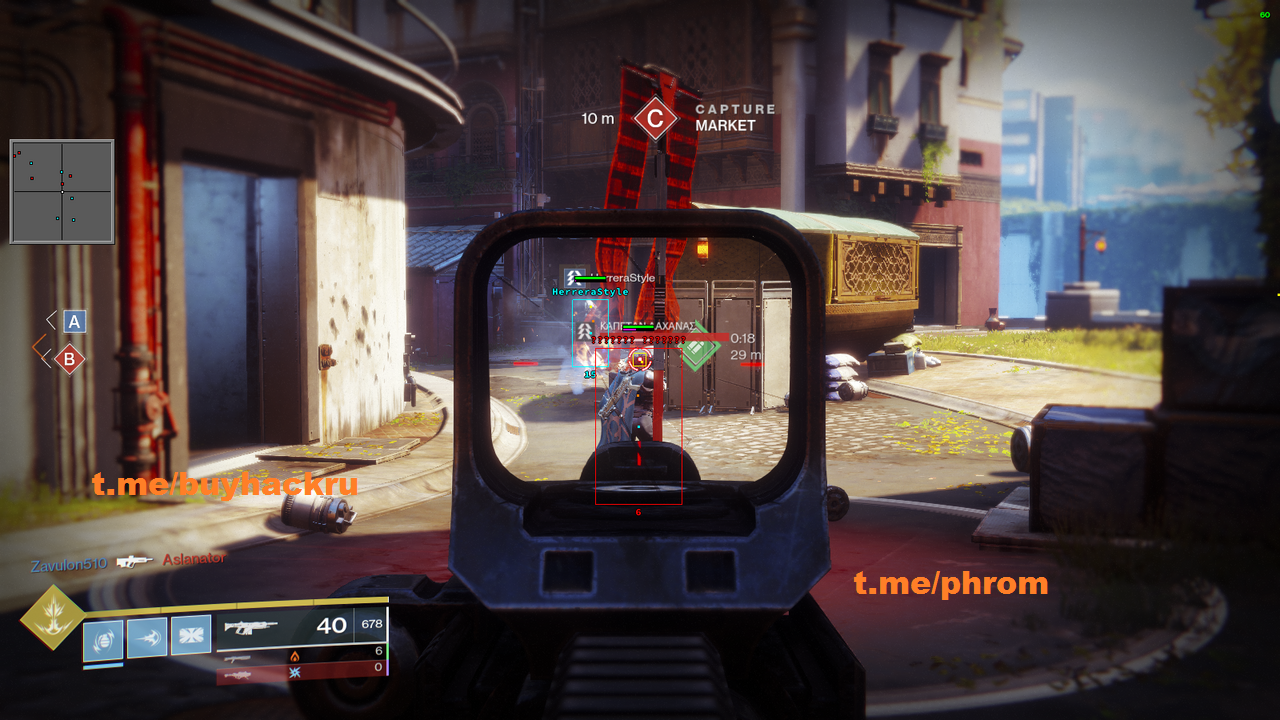 Приватный чит для Destiny 2 . В чите есть множество визуальных функций. Отображение игроков, отображение их никнеймов, техники, лута ,животных. Настраиваемая детально дистанция до отображения лута,противников и многое другое