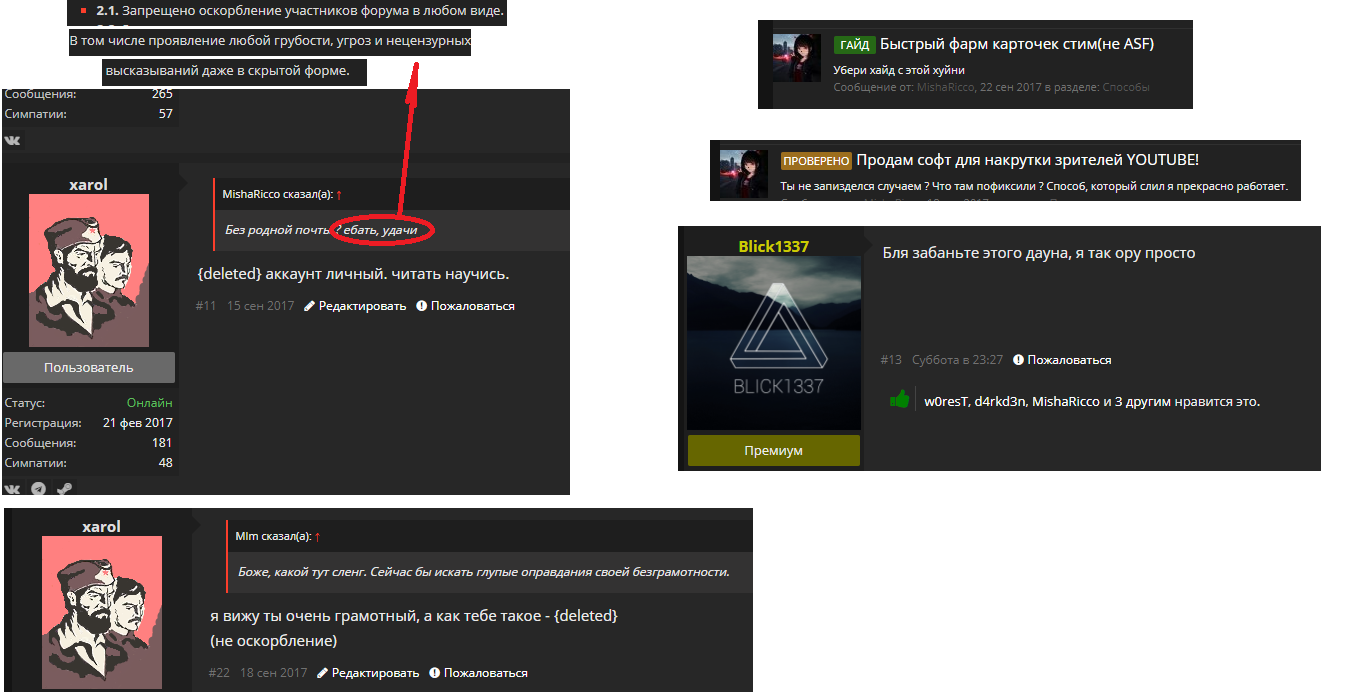 Посмотрим и на сообщения Blick1337 , наполовину админа, всеобщего любимчика.