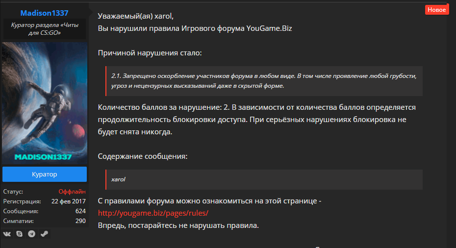 Кто-нибудь из администрации вообще читает эту тему? Может уже снимите @Madison1337 ? Судя по этой теме, варны выдаются просто за.... Да за нихуя! Просто так.