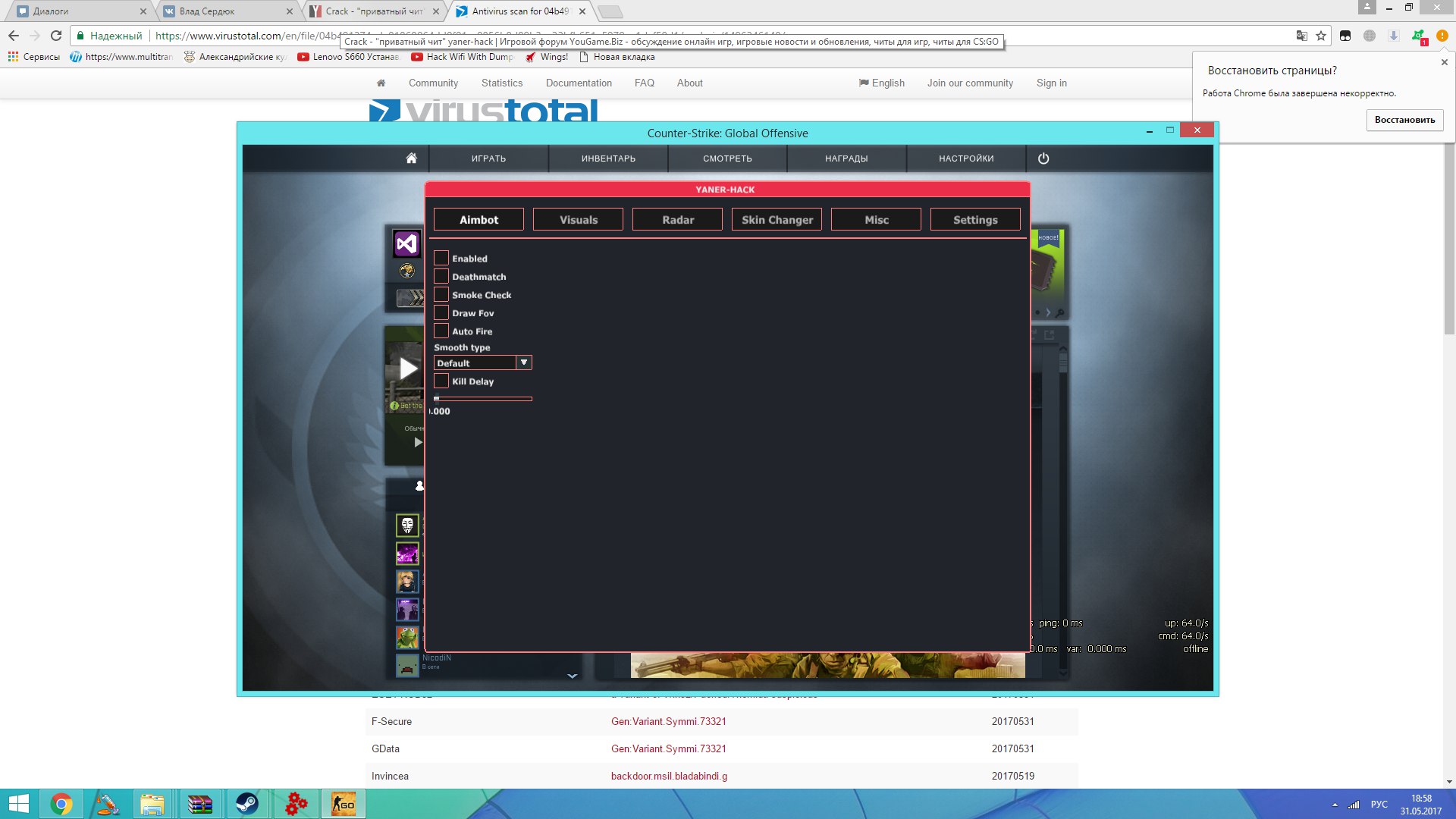 В данном разделе софт не проверяется модераторами, даже популярные пользователи могут в очередном обновлении вшить вирус в чит, поэтому любое использование исключительно на свой страх и риск. В разделе "Проверенные читы для CS:GO" вы можете скачать софт, который был одобрен нашими модераторами. Ссылка: https://yougame.biz/forums/843/