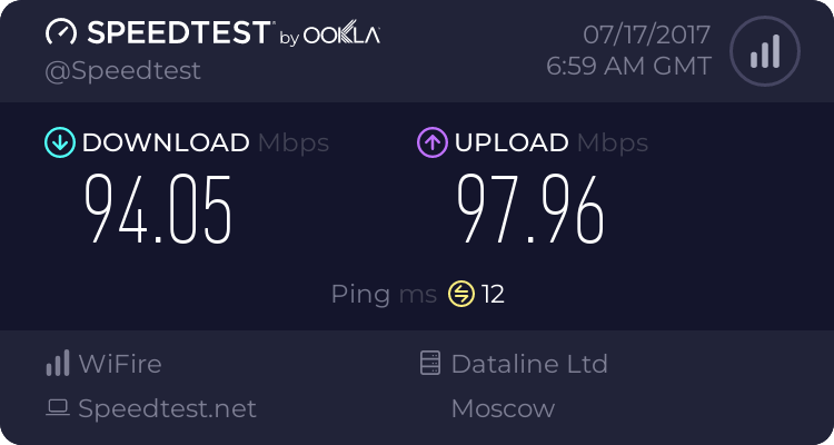 На спид тесте с wifi скорость 60 mb, а с проводом 96mb.(Оно и понятно провод быстрее)