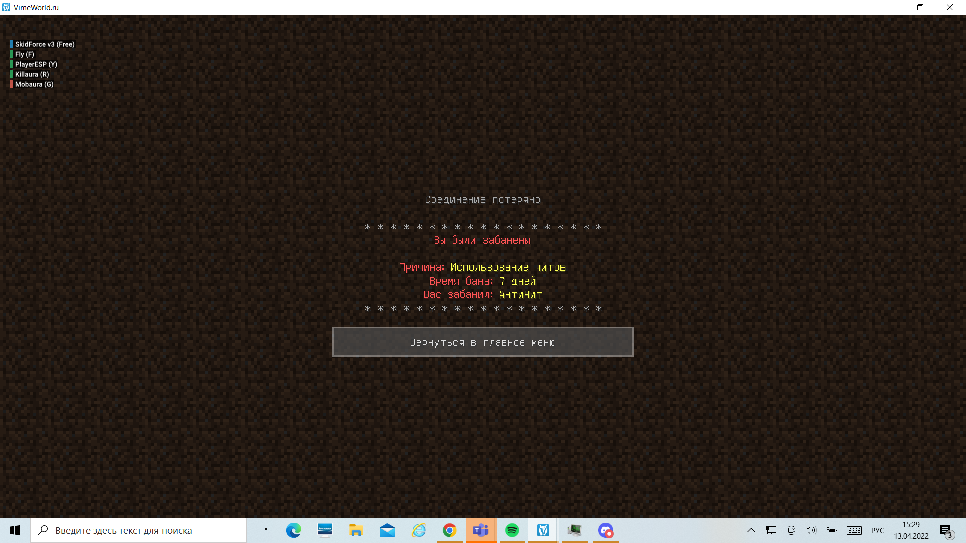 sasha77 написал(а): Ну какбэ даПосмотреть вложение 199504 Нажмите для раскрытия... когда ты получаешь 7 репортов от игроков тебя банит, ето не работает если у тебя аккаунт старый