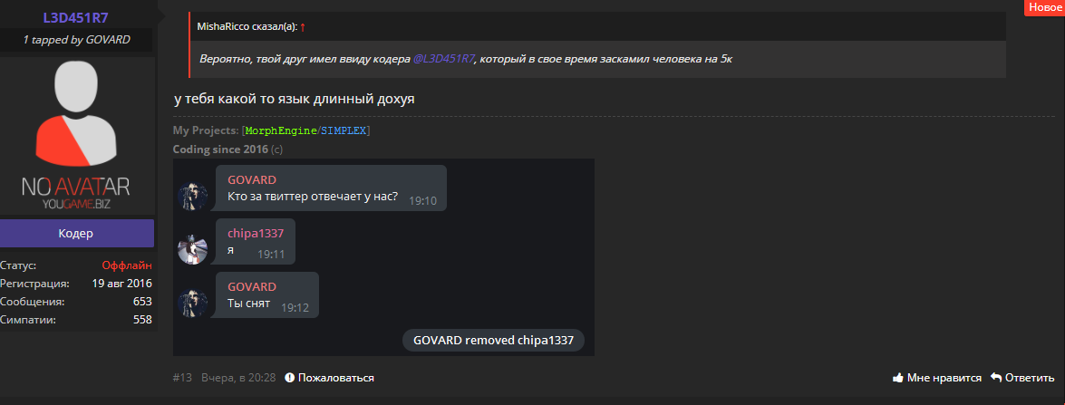 - 1.3. Запрещено оставлять в теме сообщения с содержанием: "Спасибо", "Помог" и тд. Если хотите поблагодарить пользователя - нажмите кнопку "Мне нравится".
