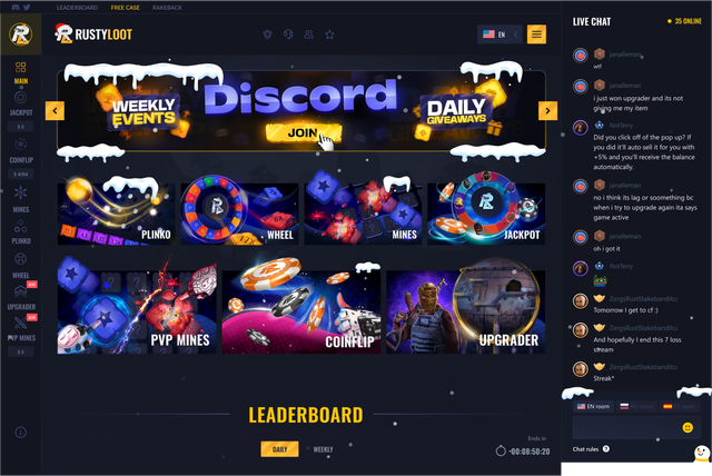 Include: Jackpot, CoinFlip, Mines, Plinko, Wheel, Upgrader, PVP Mines