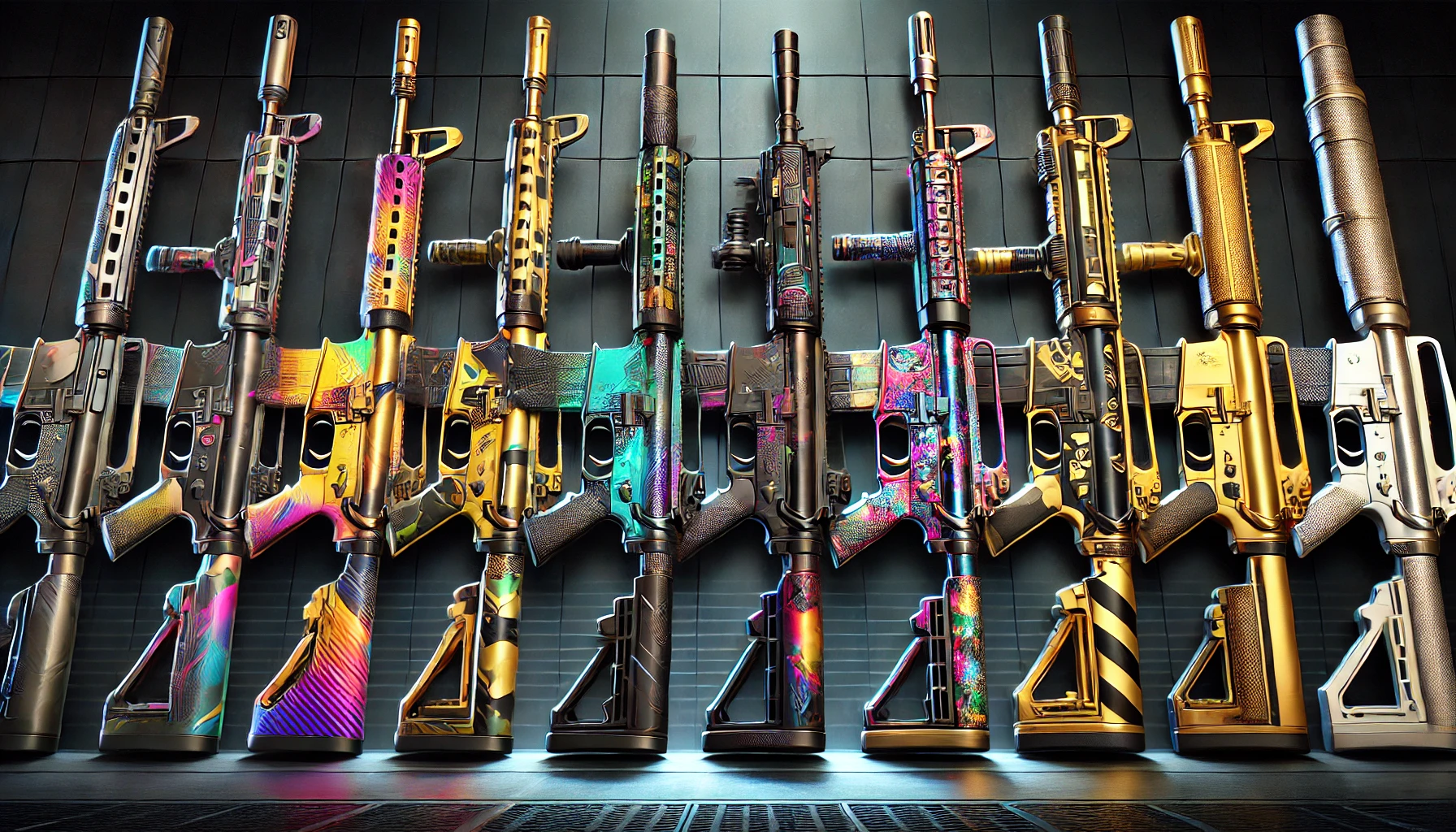 - Скины с наклейками — Их можно кастомизировать, добавляя наклейки из ивентов или рынка. Чем уникальнее комбинация, тем выше цена.