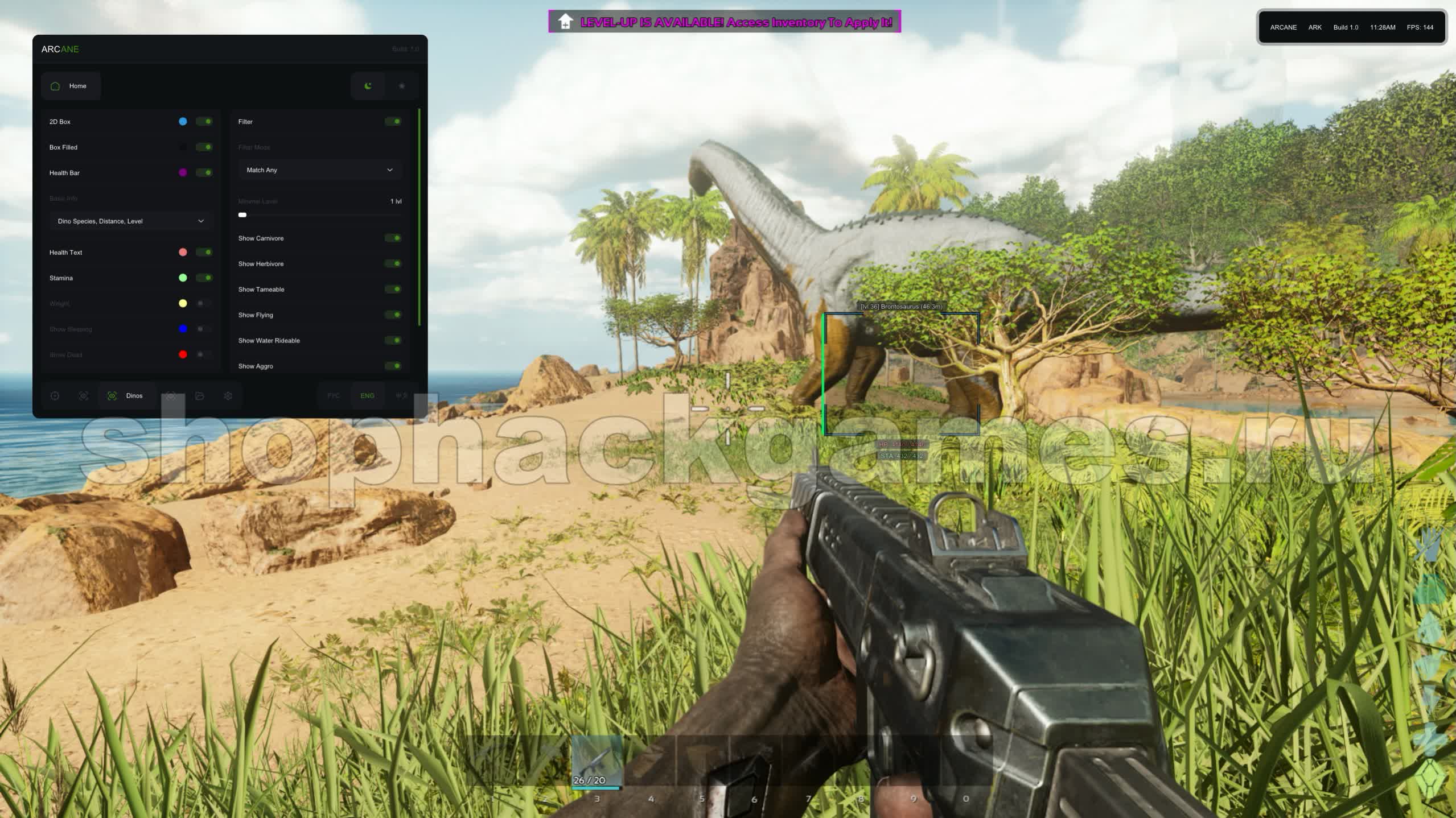 Ищете качественный чит Ark Ascended, который гарантирует победу с минимальным риском? Arcane - это функциональный софт, созданный опытными программистами для максимальной эффективности и безопасности. Наш чит Арк предлагает продвинутый Aimbot с настройками наведения, предсказанием движения и режимами «удержание/переключение», адаптируясь под любой стиль игры. Подсветка игроков (ESP) и динозавров отображает уровень, здоровье, расстояние и даже предметы в руках, а уникальный Dino Filter позволяет фильтровать цели по типу, уровню и агрессивности. Благодаря шифрованию данных и регулярным обновлениям, Arcane остается незаметным для античит-систем. Это качественный хак для тех, кто ценит надёжность и стабильность.