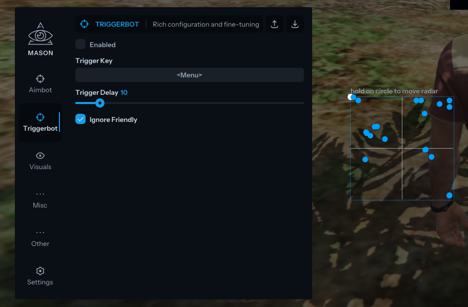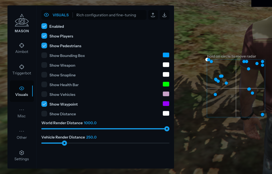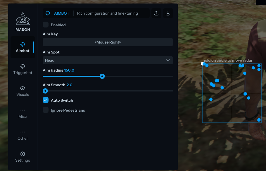 Чит MaSoN для GTA 5 RP Online - один из самых функциональных и надёжных софтов для игры. Он включает Aimbot с гибкой настройкой плавности, радиуса и выбора цели, Triggerbot для автоматической стрельбы, а также мощные Visuals (ESP): отображение игроков, транспорта, здоровья и дистанции. Дополнительно доступны God Mode, супер прыжок, телепорт, бесконечная выносливость, NoClip и другие функции для полного контроля в RP-режиме. MaSoN сочетает богатый функционал, удобное меню, стабильность и защиту от античита. Покупая у нас, вы получаете мгновенную доставку и круглосуточную поддержку.