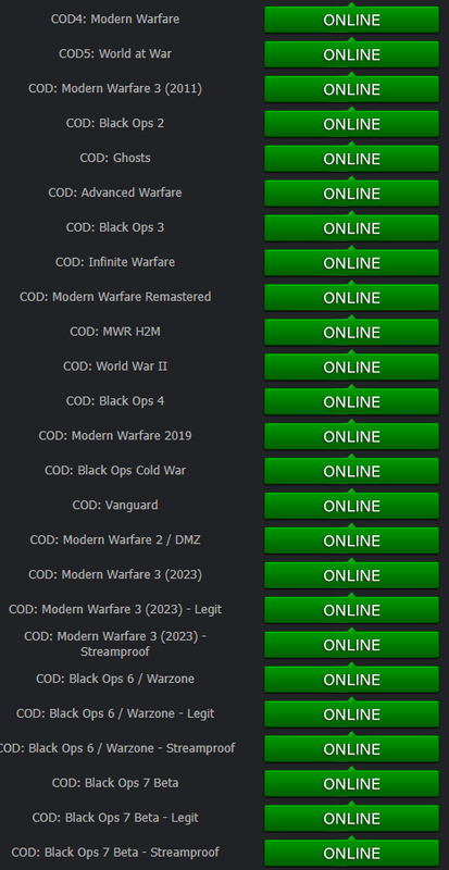 Читы для Call of Duty: Black Ops 7. В чите на CoD BO7 есть аимбот который учитывает упреждение с помощью которого вы будите доминировать в игре и с легкостью убивать врагов. Детальная настройка аимбота позволит вам играть как палевно, так и бесплалено для других игроков. Блэк Опс 7 чит покажет всех игроков, мины, гранаты, брошенное оружие, предметы и лут на карте и много другое.