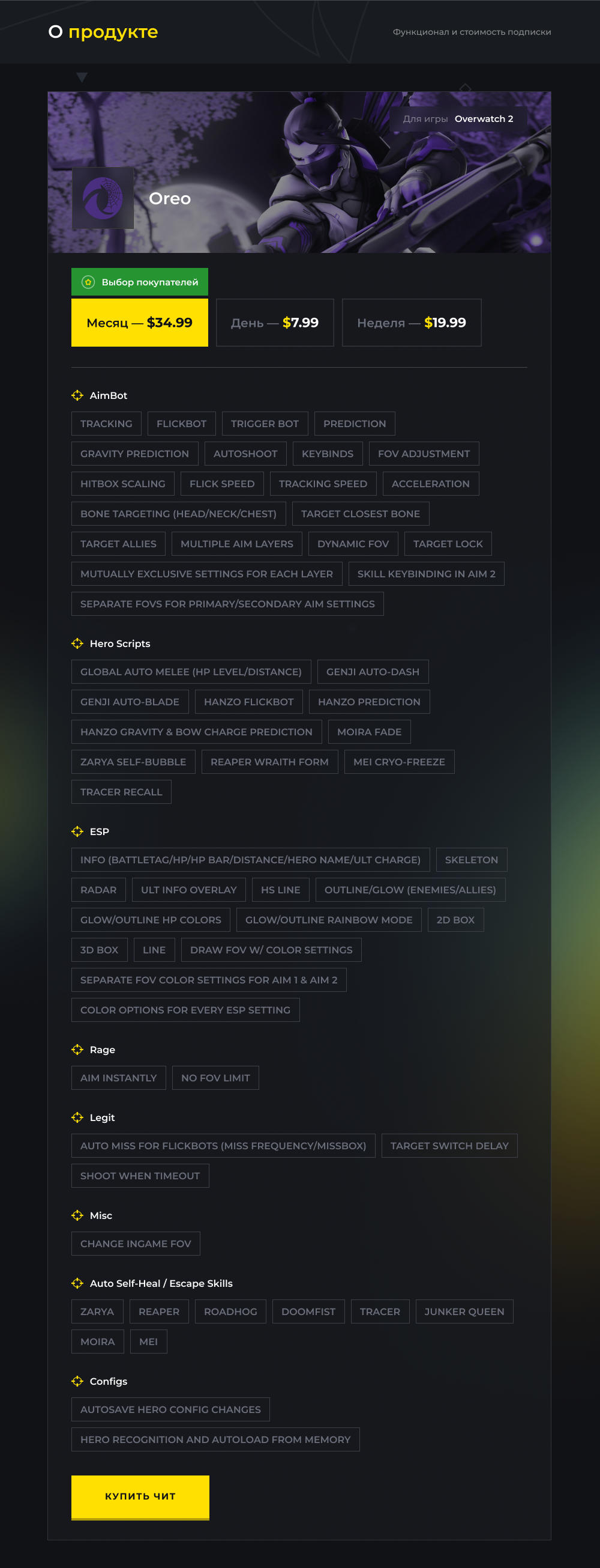 Разблокируйте чит Oreo для Overwatch 2 – премиум-aimbot, ESP wallhack, скрипты для героев и легит-функции для уверенных побед. Никаких банов, мгновенный доступ, бесплатные обновления и круглосуточная поддержка. Доминируйте на поле боя прямо сейчас!