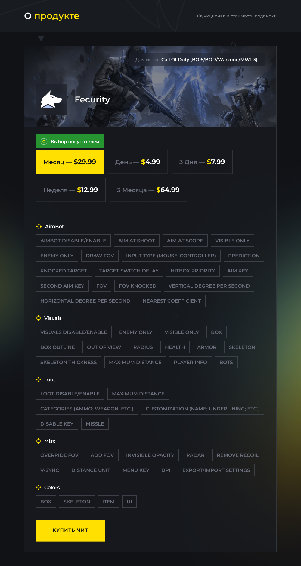 Продукт Fecurity для игры Call of Duty [BO6 | BO7 | Warzone | MW3 | MW2 | MW]