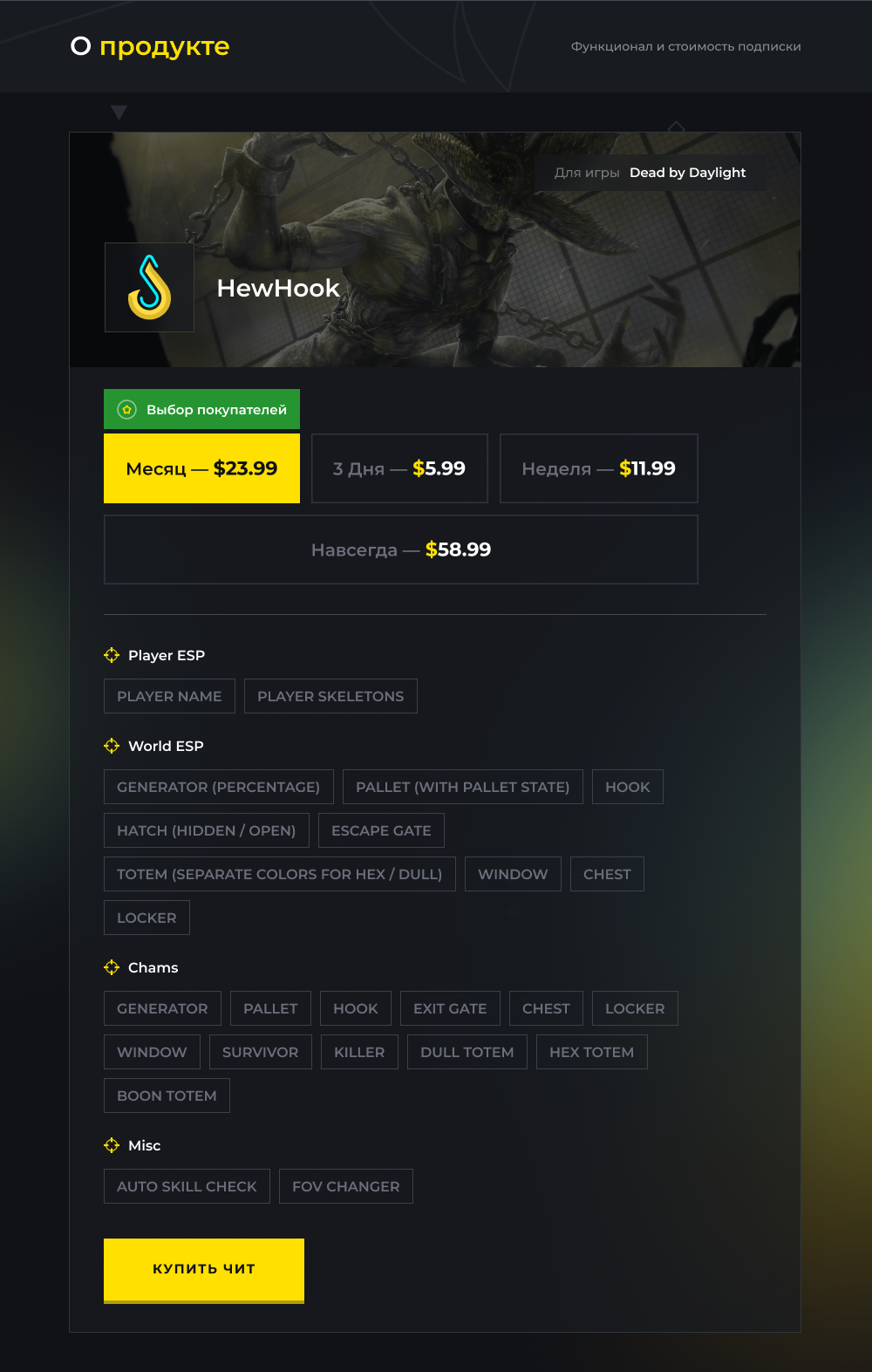 Продукт HewHook для игры Dead by Daylight