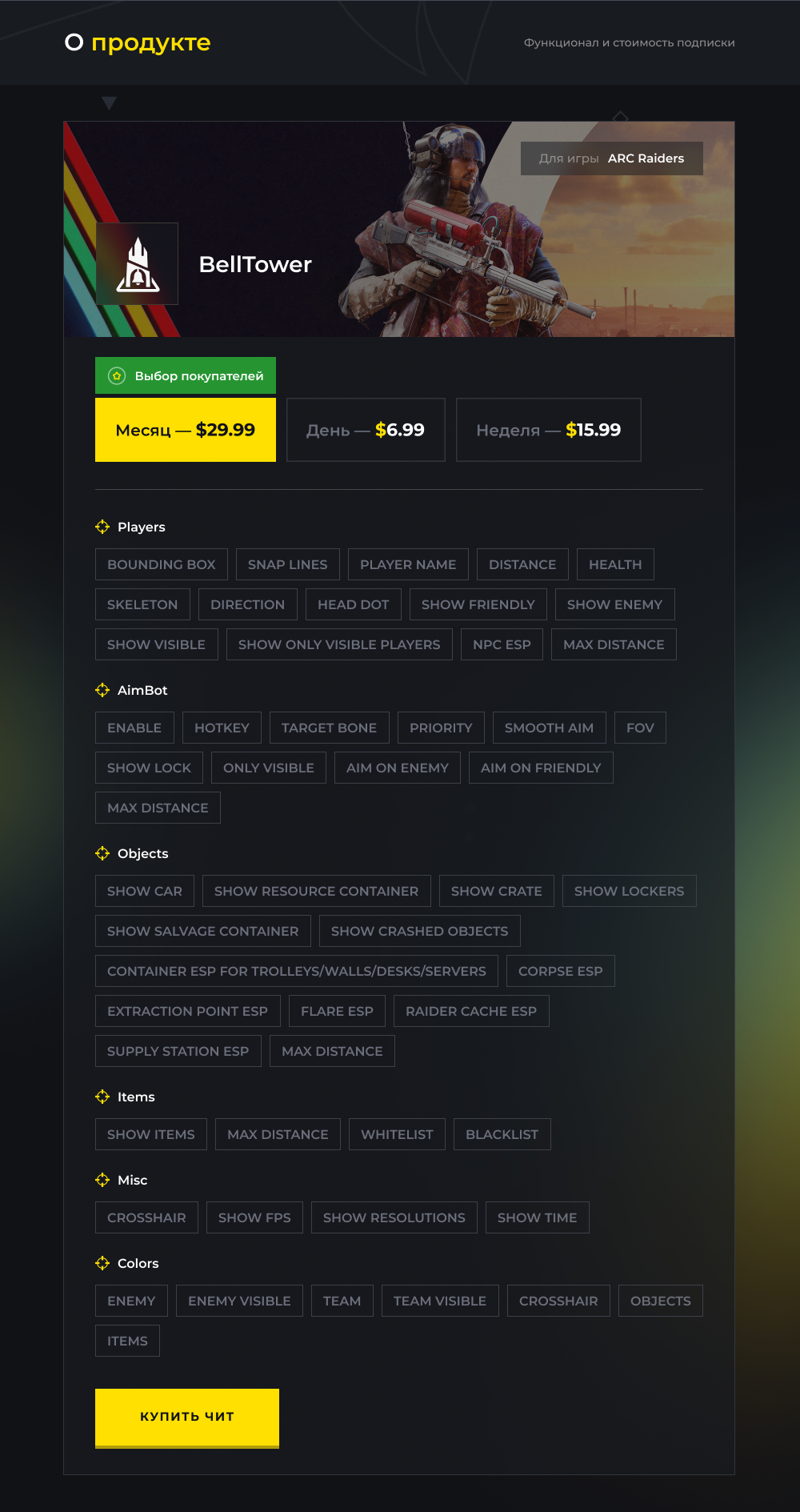 Продукт BellTower для игры ARC Raiders