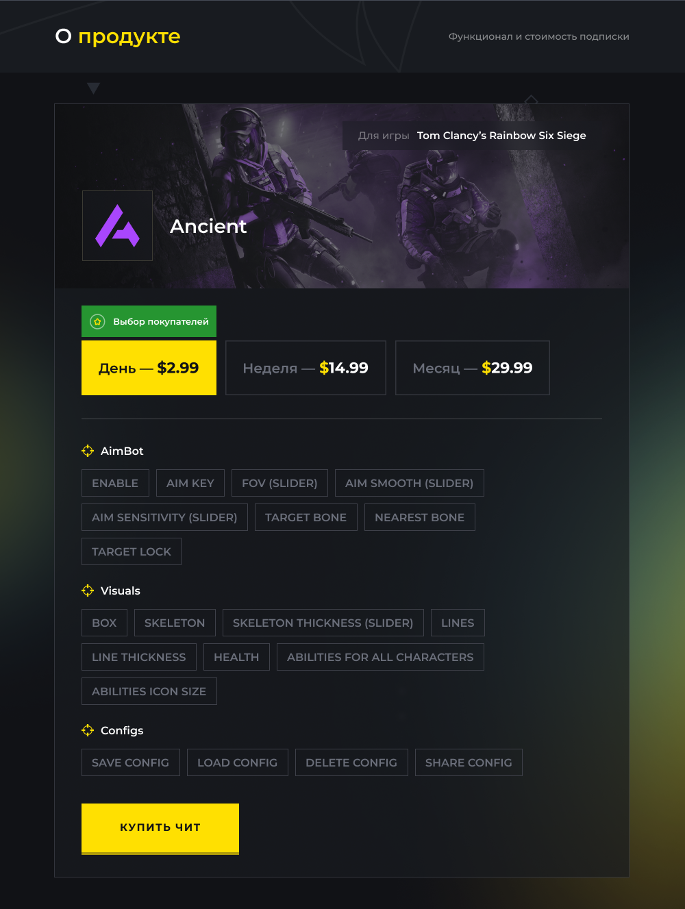 Рейнбоу Сикс Сидж Ancient, Rainbow Six Siege Ancient, Р6 чит, R6S cheat, Rainbow Six Siege приватный чит, R6S премиум чит, Рейнбоу Сикс андетектед, R6S ESP, R6S вх, Rainbow Six Siege wallhack, R6S аимбот, Рейнбоу Сикс плавный аимбот, R6S предсказание аима, R6S беспалевный аим, Rainbow Six Siege ESP игроков, R6S боксы ESP, R6S скелет ESP, R6S хелс бар, Рейнбоу Сикс дистанция ESP, R6S ESP способностей, R6S способности оперативников вх, R6S клавиша аима, Rainbow Six Siege радиус FOV, R6S липкий лок цели, R6S проверка видимости, R6S макс дистанция аима, R6S выбор костей голова/тело, R6S шаринг конфигов, R6S загрузка/сохранение конфигов, Rainbow Six Siege постоянные обновления, R6S самый надежный чит, R6S чистый статус, R6S античит байпас, R6S внешний чит, R6S стримпруф, R6S стример мод, R6S легит аимбот, R6S рейдж аимбот, R6S тактический чит, R6S видимость способностей сквозь стены, R6S предик предсказания, R6S вижн чек аимбот, R6S хедшот аим, R6S боди аим, R6S хуманизированная плавность, R6S Ancient скачать, Рейнбоу Сикс приват 2026, R6S лучший чит 2026, R6S дневной ключ, R6S недельный ключ, R6S месячный ключ, R6S безопасный хак, R6S чит без бана, R6S Ancient ESP, R6S Ancient аимбот, R6S топ чит 2026, R6S элитный приватный чит, R6S читы на русском, R6S купить чит, R6S радар хак, R6S снаплайн ESP, R6S лут подсветка, R6S ноу рекол, R6S античит обход, R6S приватный софт, R6S undetected хак
