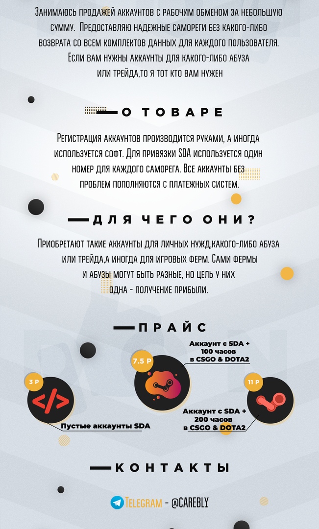 Текстовый файл с данными от: почты, стима, а так же RCODE, Номер, на который привязан аккаунт, maFile для активации SDA.
